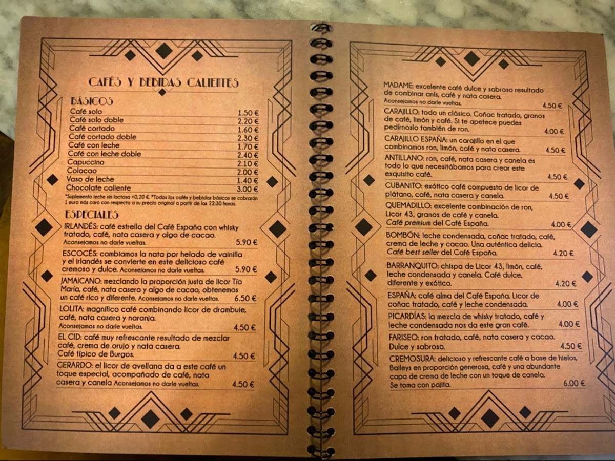 Welcome to Cafe Espana, a cherished gem in the heart of Burgos, located at C. de Lain Calvo, 12. This charming cafe offers a delightful menu that transports you to a traditional Spanish coffee experience.